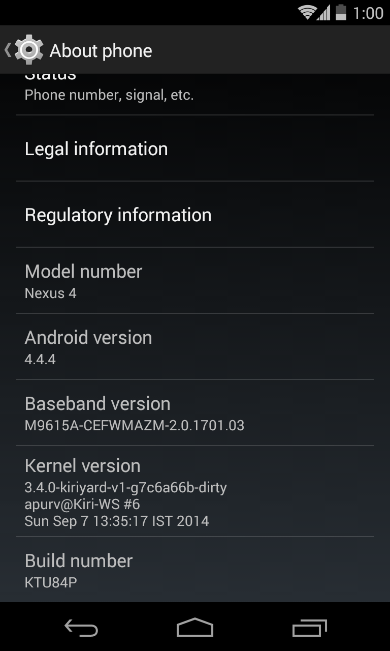 Currently I’m running Kitkat 4.4.4, so for that I’ll go for android-msm-mako-3.4-kitkat-mr2 branch.